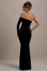 Black Velvet One-Sleeve Maxi DressThe pinnacle of sophistication Sandrine has landed and is ready to get you stealing the spotlight at every occasion. Arriving in our black premium velvet, this maxi dress features a gorgeous bardot neckline with one long sleeve and a flattering high leg split. Pair yours with...