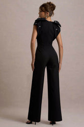 Black Straight-Leg Jumpsuit With Embellished BowsDefined by sophisticated details that turn heads, Elma is a striking option for your next special occasion. Crafted from premium black crepe, this straight-leg jumpsuit features embellished bows cascading down the bodice, adding a touch of sparkle to its sleek silhouette. The tailored fit...