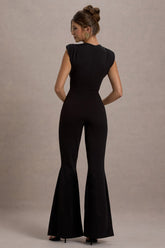 Black Embellished Strappy Flared-Leg JumpsuitAmadi is a statement-making choice for your next special event. Crafted from our premium crepe, this black strappy jumpsuit features eye-catching embellishments that add a touch of glamour to its sleek silhouette. The fitted bodice beautifully contrasts with the flared-leg design, creating a flattering...