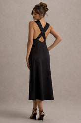Black Satin Plunge-Neck Cross-Back Midi DressDefined by sleek sophistication and sultry detailing, Beck is a timeless option for your next special occasion. Crafted from our premium stretch satin in a classic black hue, this midi dress features a plunging neckline that adds a touch of daring elegance while the...