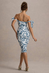 Blue Porcelain Print Bardot Bodycon Midi Dress With Bow SleevesEffortless elegance meets timeless allure with our Citrus midi. Curated in our flattering, premium stretch jersey in a bold blue porcelain print, ensuring you make a statement at every turn. The bandeau neckline and bow sleeve detail adds a touch of romance and femininity,...