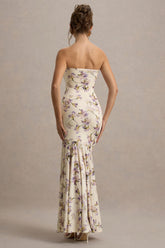 Lemon Floral Print Bandeau Fishtail Maxi DressTurn heads in our Callie maxi. Designed to sculpt and flatter, this show-stopping gown is cut in our premium stretch crepe. Adorned in a delicate lemon floral print, which brings a soft, romantic touch to the statement silhouette. The structured bandeau neckline paired with...