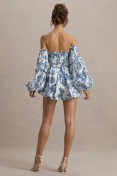 Blue Porcelain Print Bardot Ruffled PlaysuitThe must-have playsuit of the season has just landed, say hello to Ithaca. Crafted from our premium blue porcelain print poly cotton poplin, this piece features a gorgeous bardot neckline and volume sleeves for a breezy summer silhouette. Style yours with heeled sandals for...
