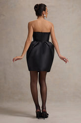Black Bandeau Mini Dress With Tulip SkirtFrom summer weddings to race day events, Lovebug was made for special occasions. Crafted in a timeless black shade of our premium twill fabric, this structured mini dress is defined by a bandeau neckline and elegant tulip skirt. Compliment its shade with gold accents...