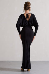 Black Draped Plunge-Neck Maxi DressWhatever the occasion, Ruth is a classic choice. Crafted in a premium curve-enhancing jersey, this black maxi is defined by contemporary batwing sleeves, plunge neckline and functional self tie back. For a timeless wedding guest look, pair yours with a tousled bun and gold...