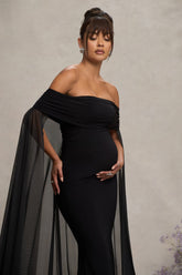 Black Bardot Maternity Maxi Dress With Chiffon CapeExude an ethereal state of mind in Carlotta, our captivating cape maxi dress. Defined by a flowing chiffon cape, this black maternity maxi also boasts a timeless bardot neckline and floor length skirt. For the perfect wedding guest ensemble, style yours with a tousled...
