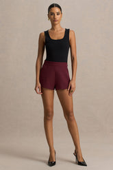 Burgundy Tailored ShortsRedefine tailored elegance with Lina, sleek shorts designed for effortless sophistication. Cut from our premium burgundy crepe, this polished style offers a refined take on everyday dressing. Featuring a tailored fit and subtle back pockets, Lina combines sharp structure with timeless versatility for a...
