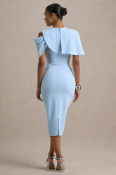 Blue Draped Midi Dress With CapeThe season calls for a standout piece like Dorothea. Carefully crafted in a bodycon silhouette of draped blue premium scuba crepe, this standout piece features a classic cape detail, short sleeves, and a midi hem. To elevate this style even further, pair it with...