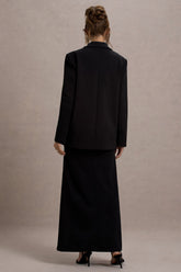 Black Plunge-Neck Boxy Oversized BlazerEmbody effortless chic this party season with Urban. Designed in a classic black shade of our premium crepe, this boxy blazer consists of subtle shoulder padding, peak lapels and a self-covered button closure. For an elevated cocktails attire, style yours with some court shoes...