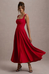 Exude a feminine charm in Parina, our romantic red midi dress. Designed in a premium scuba crepe, this playful piece features a supportive square neckline and flowing pleated skirt. A stand-out staple, Parina is proof that keeping it simple doesn’t mean playing it safe.